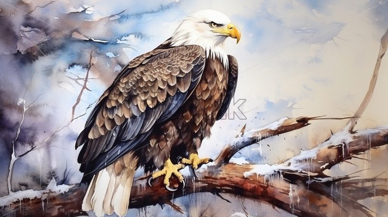 Home » Shop » Uncategorised » A bald eagle on a branch painted in watercolor