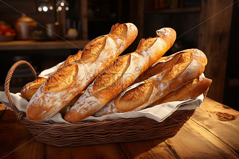 A basket of fresh French baguettes
