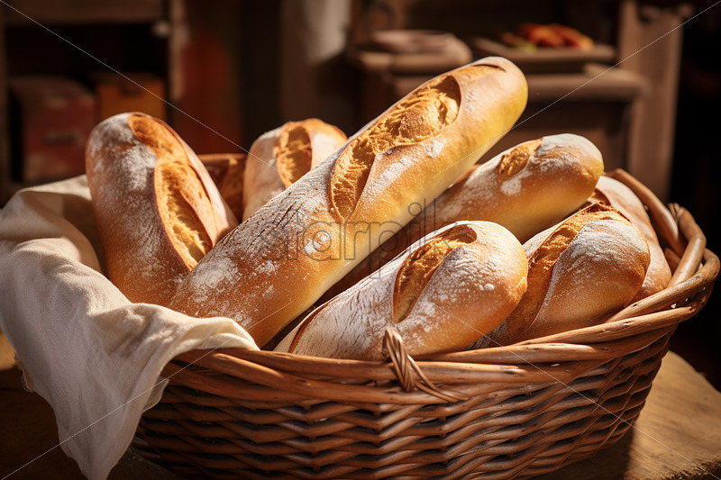 A basket of fresh French baguettes