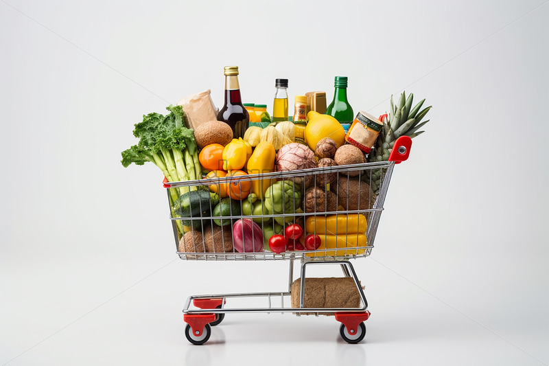 Home » Shop » Uncategorised » A basket with food products on a white background