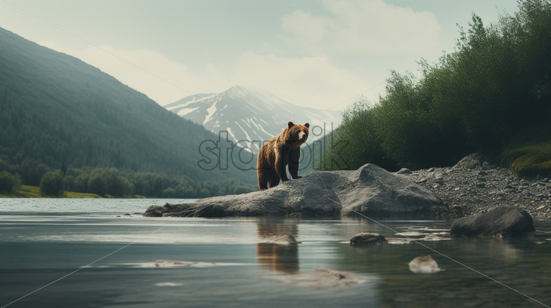Horse looking at the camera with blue eyes and red halter in the mountains, in the snowy forest