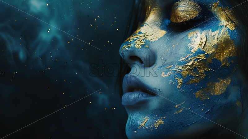 Home » Shop » Uncategorised » A beautiful girl with a face painted in blue and gold