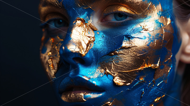Home » Shop » Uncategorised » A beautiful girl with a face painted in blue and gold