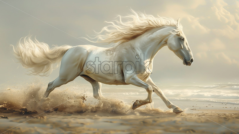 Girl in white dress holding a horse in the field. Sunrise and cloudy day. View from behind Royalty Free Stock photo
