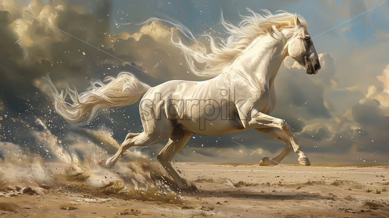 Horse looking at the camera with blue eyes and red halter in the mountains, in the snowy forest