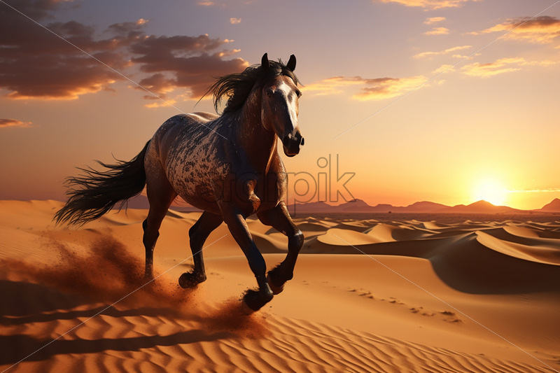 A beautiful horse runs in the desert