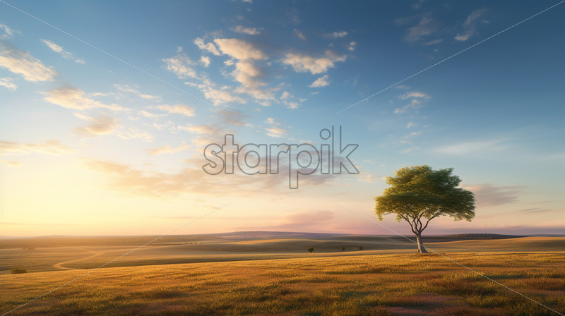 View of sunset at nature. Orange sky, clouds, stars, greenery