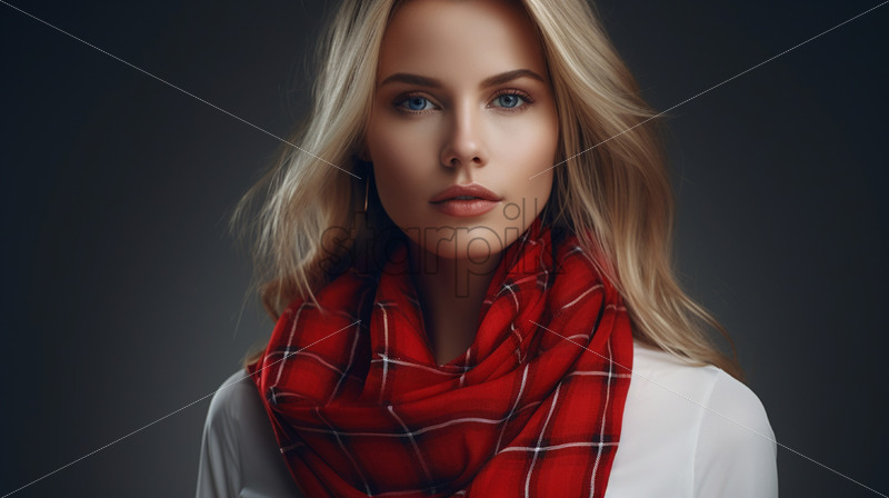 Young woman posing in a studio with red walls and furniture. Old vintage TV