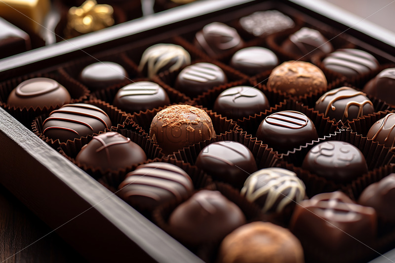 A beautiful wooden box with chocolates inside