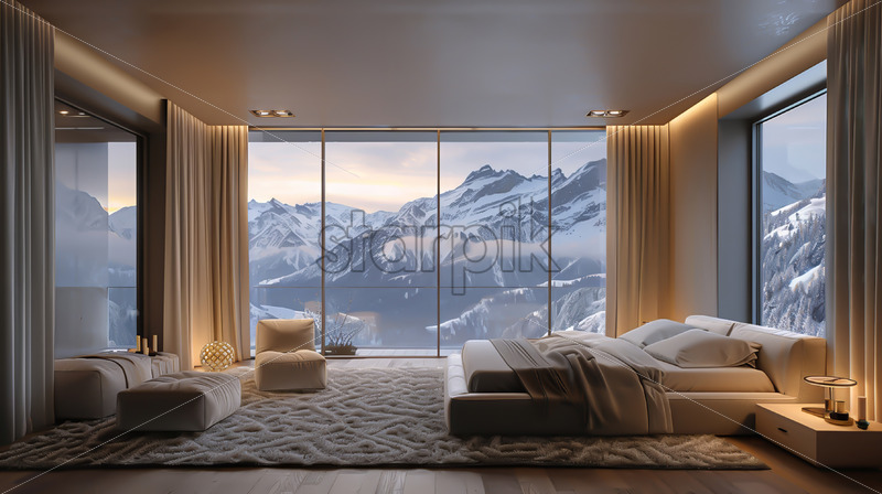 Home » Shop » Uncategorised » A bedroom with a view of a snowy mountain