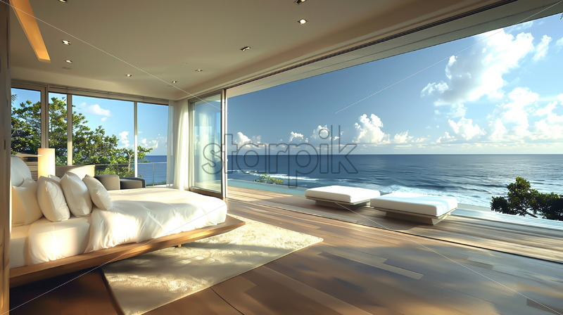 A peaceful yoga retreat overlooking the serene ocean expanse