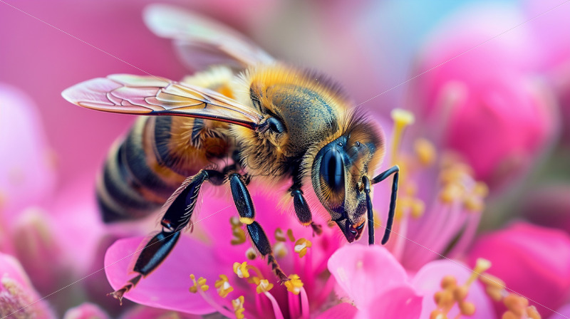 A bee, macro portrait on a flower