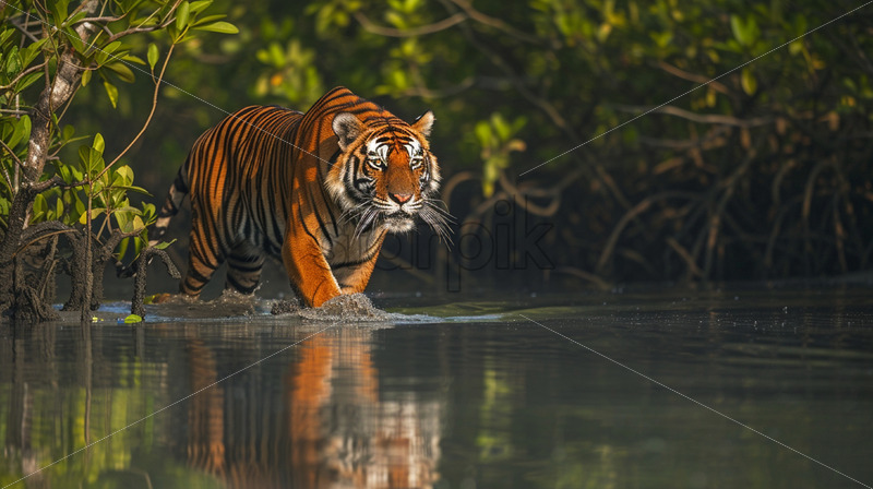 A Bengal tiger in a mangrove forest