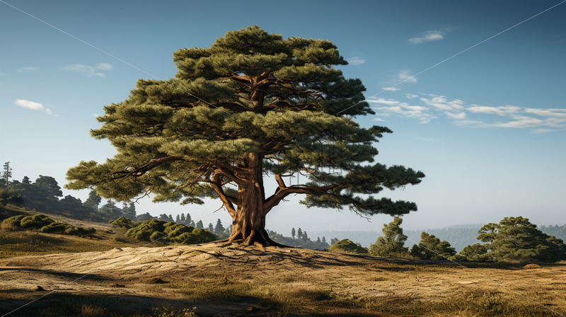 Red and yellow forest with snow in Sinaia at sunrise, Romania