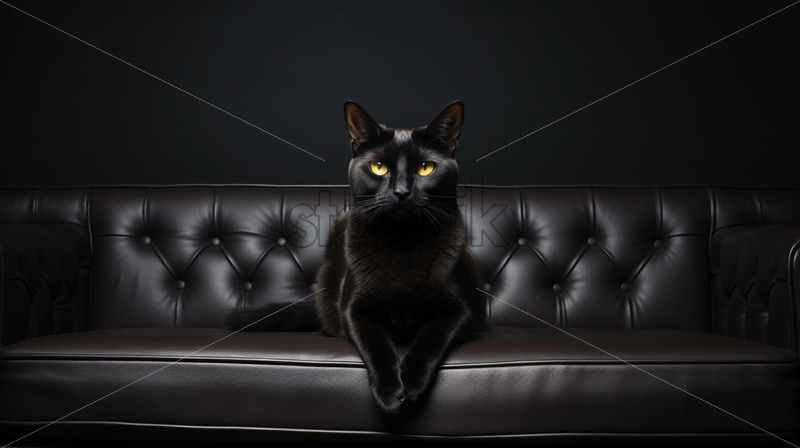 A domestic cat with dark gray fur and orange eyes lying on the couch. Slow motion Royalty Free Stock Video Footage