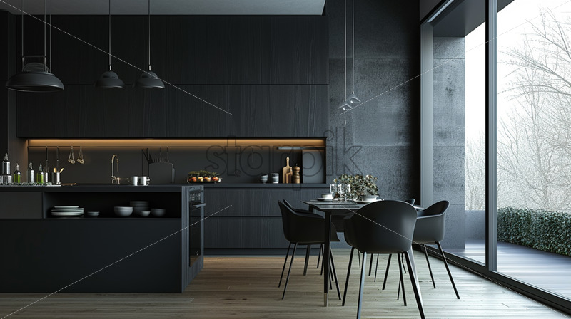 Wooden apartment in the country side with a minimalist theme with some plants on the corner