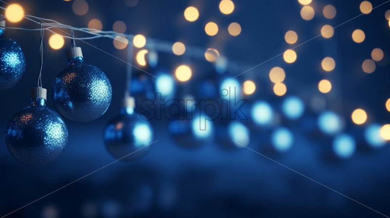 A blurred Christmas background with garlands and beautiful bokeh