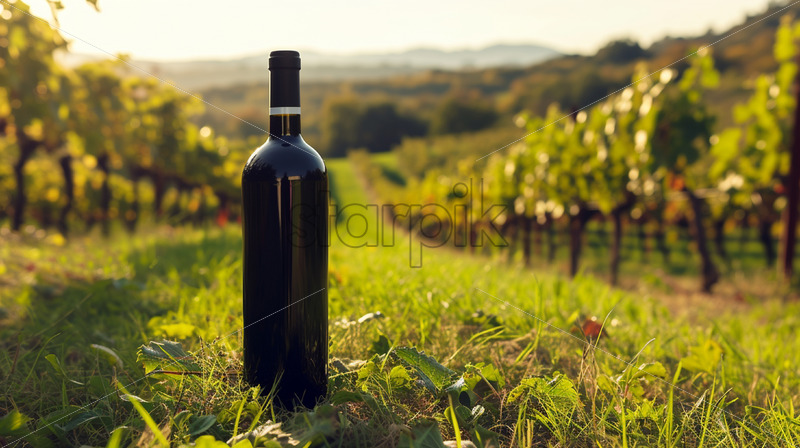 Home » Shop » Uncategorised » A bottle of wine on the background of a vineyard