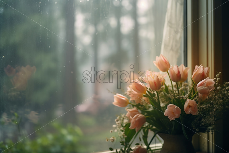 Home » Shop » Uncategorised » A bouquet of flowers on a window sill, outside the autumn atmosphere