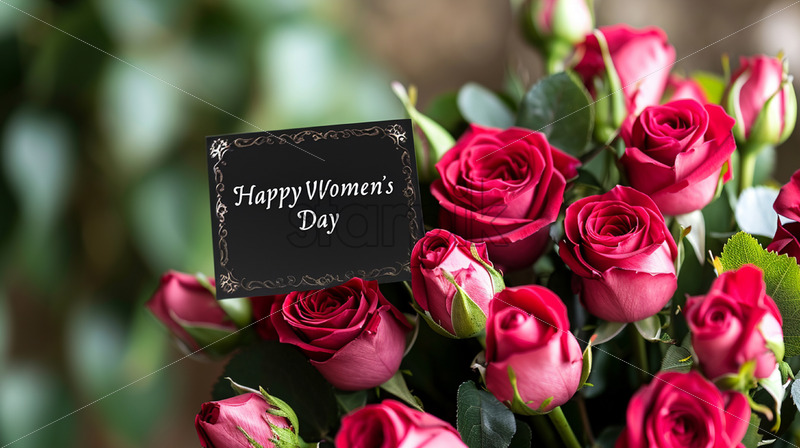 Daughter congratulates her mother and gives her a bouquet of tulips