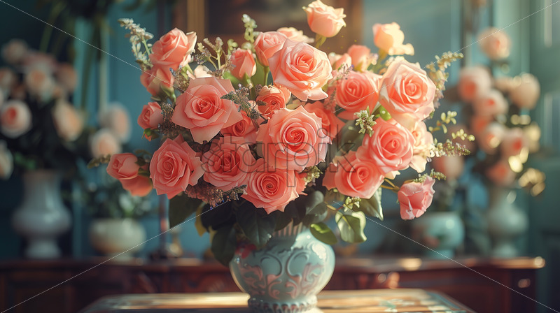 A bouquet of roses in a classic vase