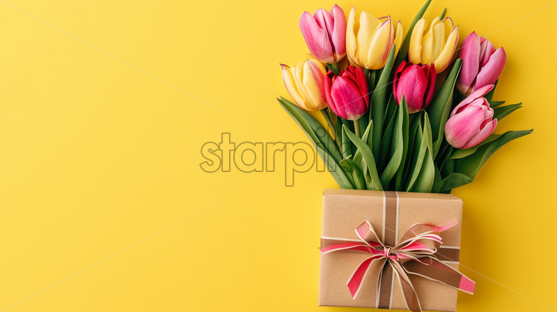 Tulip flowers bouquet, spring atmosphere flowers on peach background