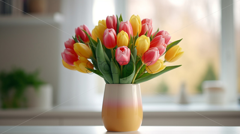 Tulip flowers bouquet, spring atmosphere flowers on peach background
