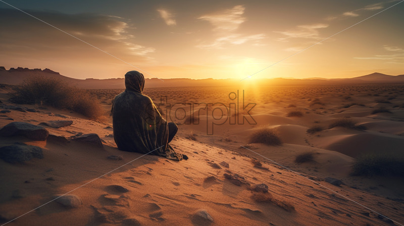 A breathtaking sunset casting golden hues over the vast desert expanse