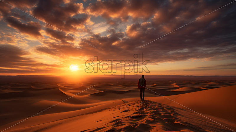 A breathtaking sunset casting golden hues over the vast desert expanse