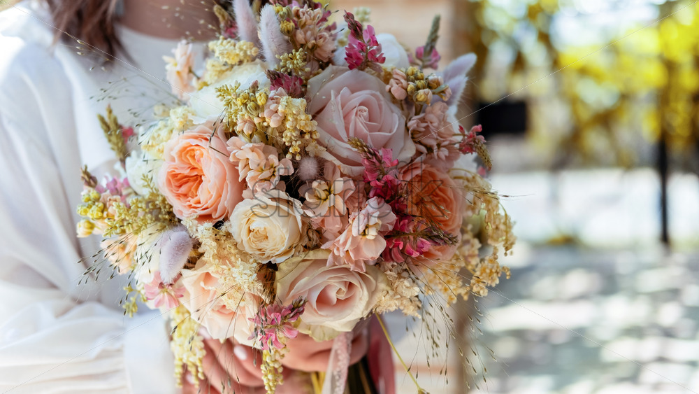 the holiday table decorated with flowers, decorative elements and combined with colors Royalty Free Stock photo