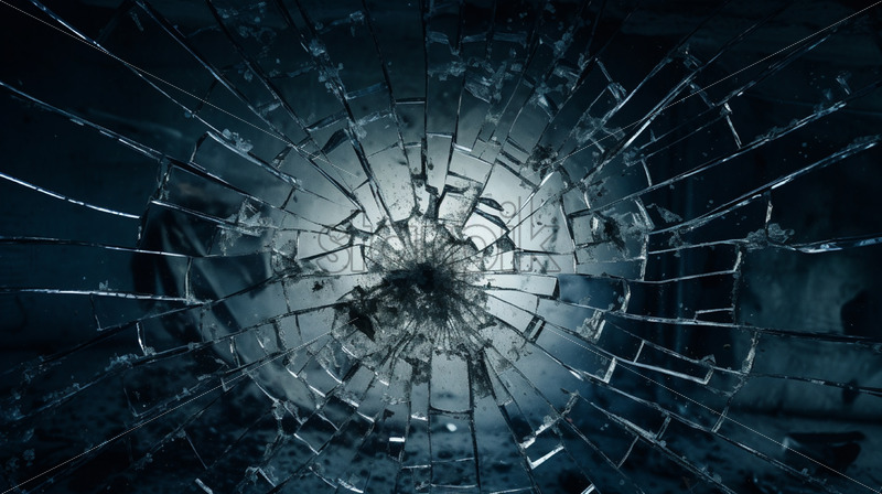 A broken window on a black background