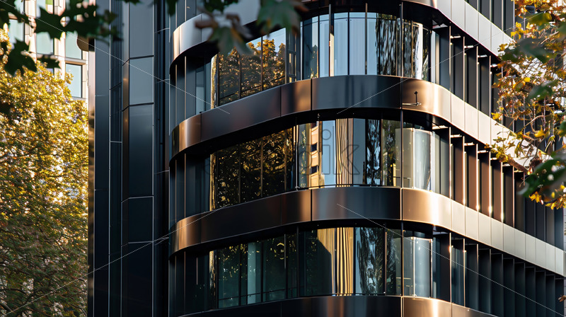 A building created from black metal and glass, design
