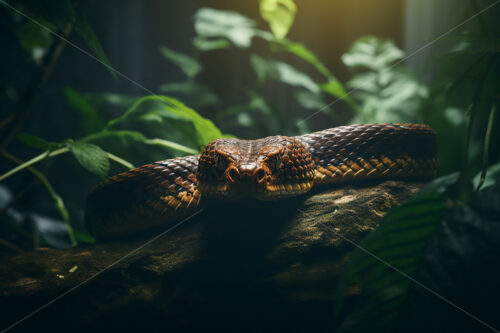 A little bird on a tree trunk, a frozen lake in the background, winter atmosphere