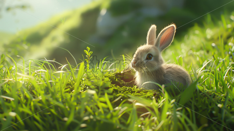A rabbit on green meadow