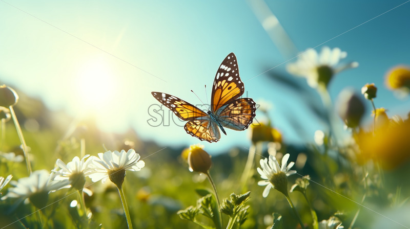 Close up of small, white daisies in the green grass Royalty Free Stock Video Footage
