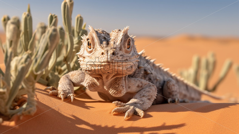 A camouflaged horned lizard blending into the desert sand