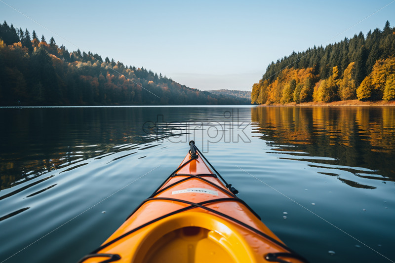 A canoe going on the lake