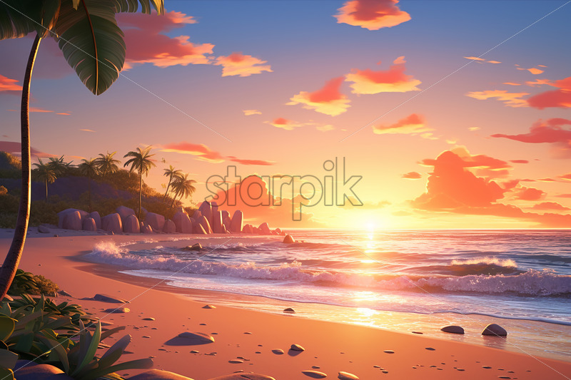 Home » Shop » Uncategorised » A cartoon style landscape with a beach