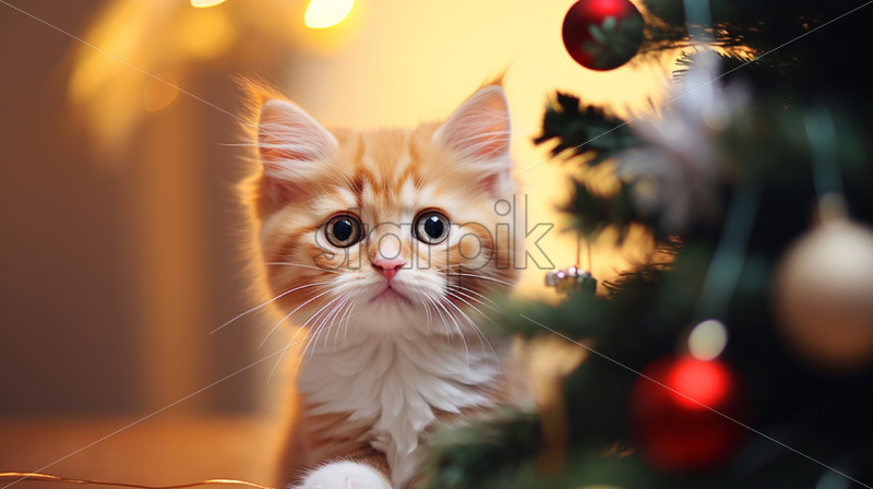 A cat near the New Year tree
