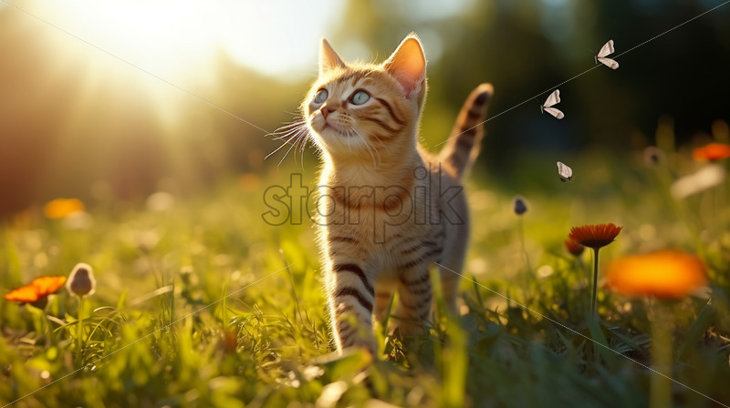 Home » Shop » Uncategorised » A cat on a field with butterflies