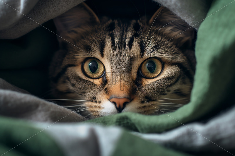 A cat poking its head out from under a duvet