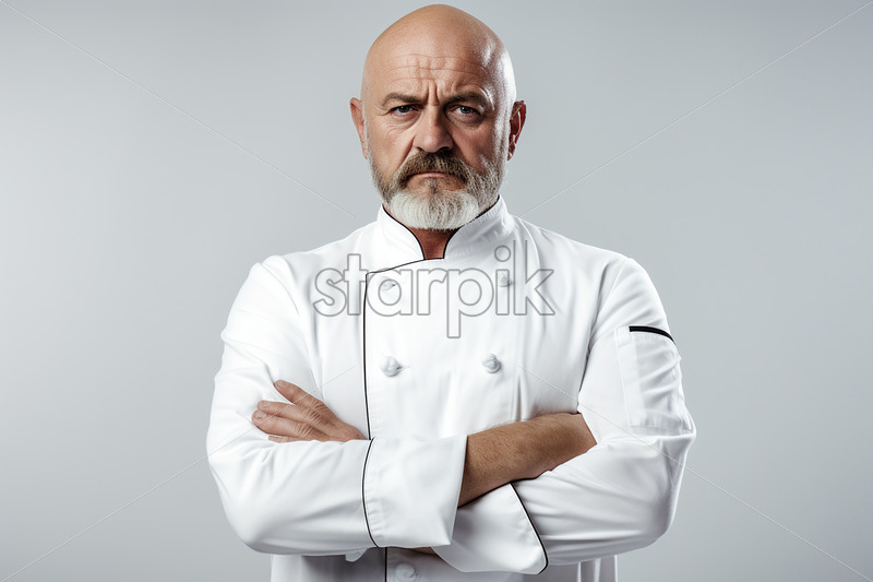 A chef sitting with his hands crossed