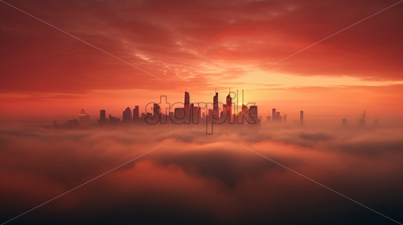 Bottom-up view of London City financial district with multiple skyscrapers, United Kingdom
