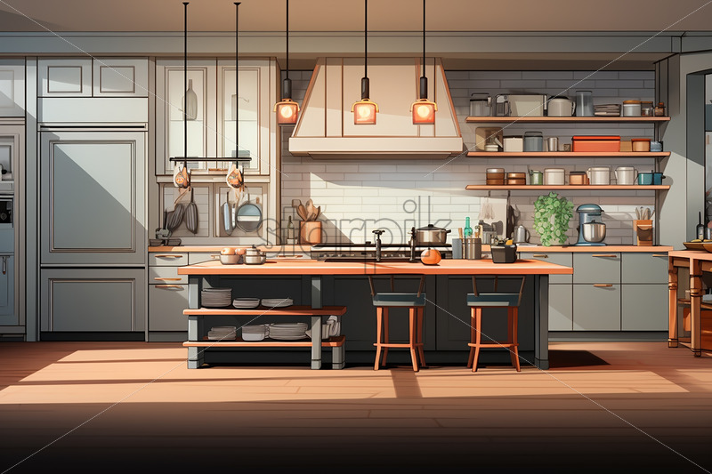 NICOSIA, CYPRUS – FEBRUARY 18, 2020: Kitchen in a house with illumination made in modern style