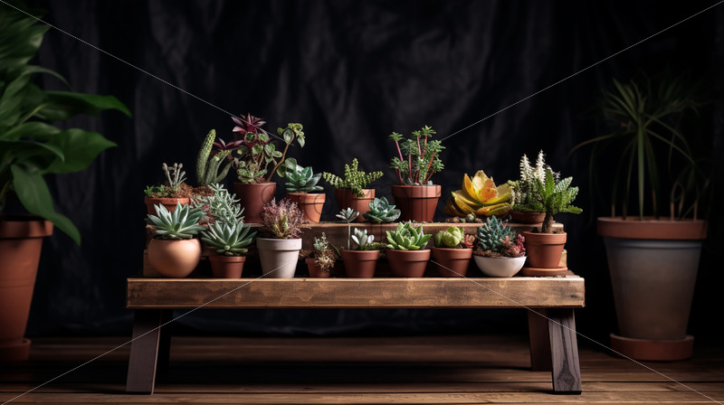 Modern wooden Cafe in the city with clear glass wall and classic wood table and chair with indoor plants and an elegant vibes