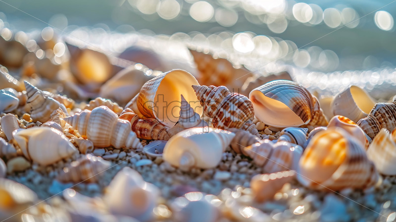 Close up of a hand holding a seashell against a clear blue sea background Royalty Free Stock Video Footage