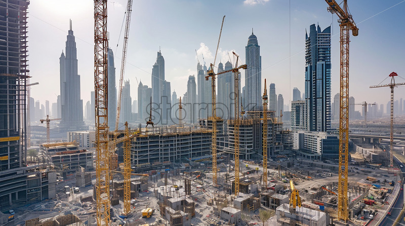 A construction worker, donned in complete PPE, stands proudly on the top of a building site, gazing at the cityscape, embodying the dedication and achievement of construction professionals