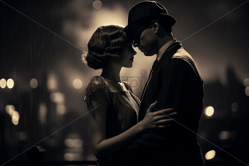 Home » Shop » Uncategorised » A couple from the 1920s against the background of a city, black and white