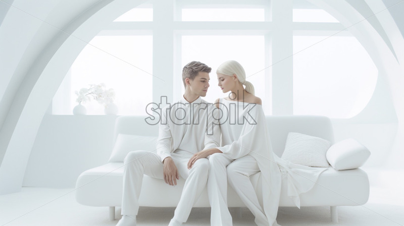 A couple in a white apartment minimalistic