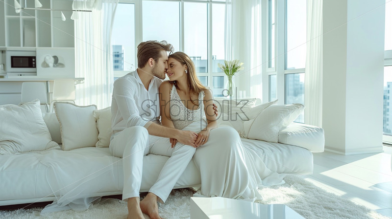 Modern house in the country side, clear glass wall and roof with cozy lounge and book shelves an elegant ambience with white theme and indoor plants